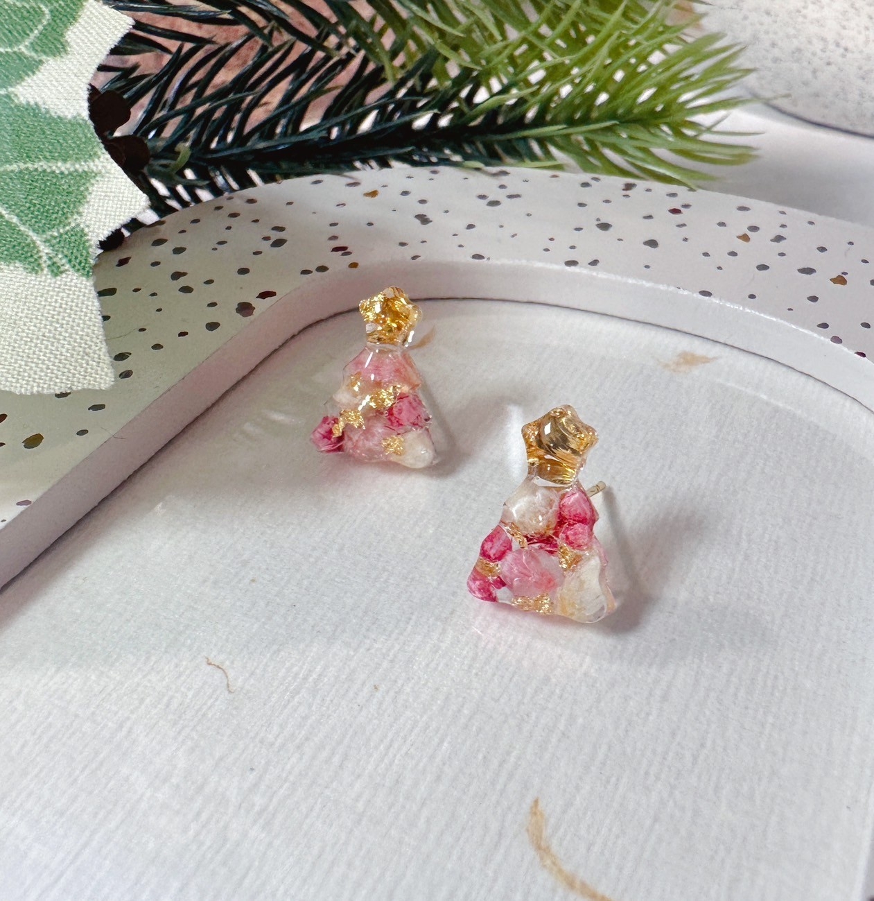 ⟡ 乾燥花手作飾品品牌 @veronique_accessory帶來粉紅聖誕樹貼耳 將聖誕樹的夢幻與浪漫化為飾品,粉白色米香花交織細膩柔美,點綴金箔的高級質感,如同節日裡的暖燈輝映,綻放迷人光彩,點綴今年粉色浪漫的聖誕節!
